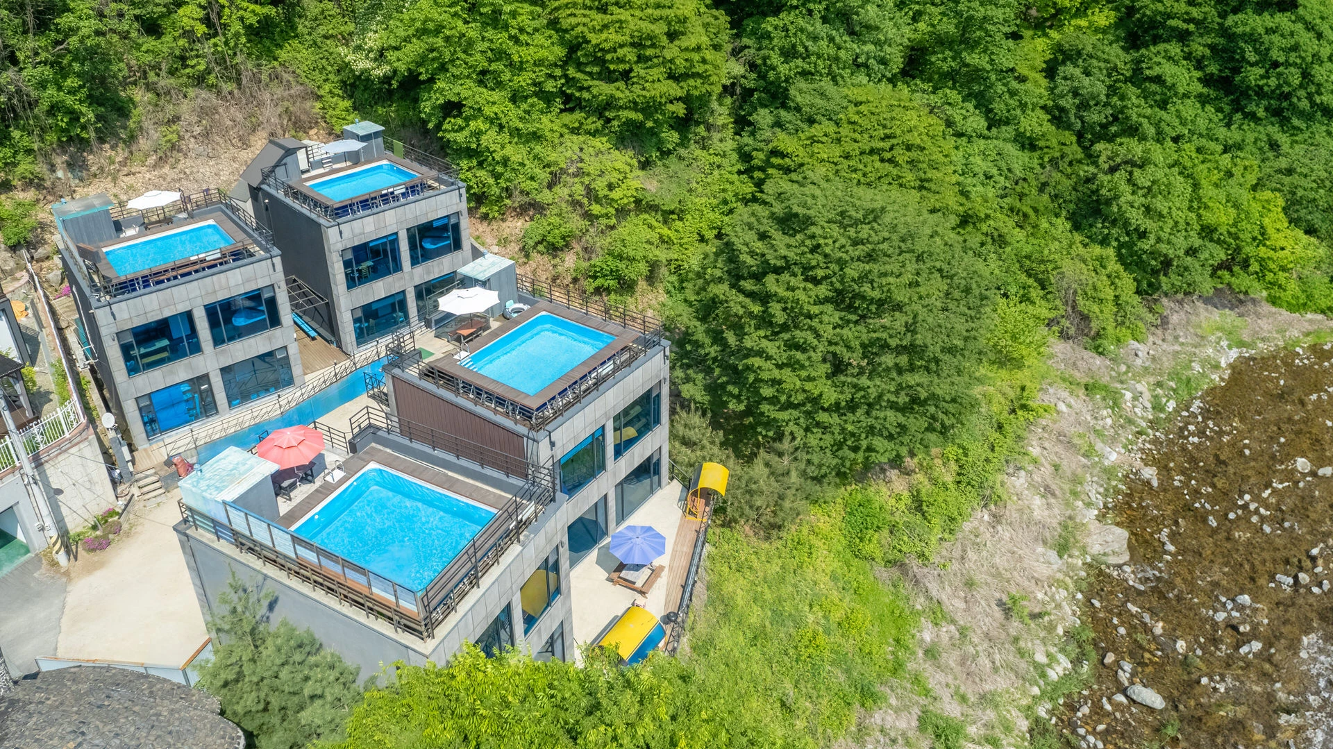 자연을 바라보며 옥상에서 즐기는 프라이빗한 물놀이