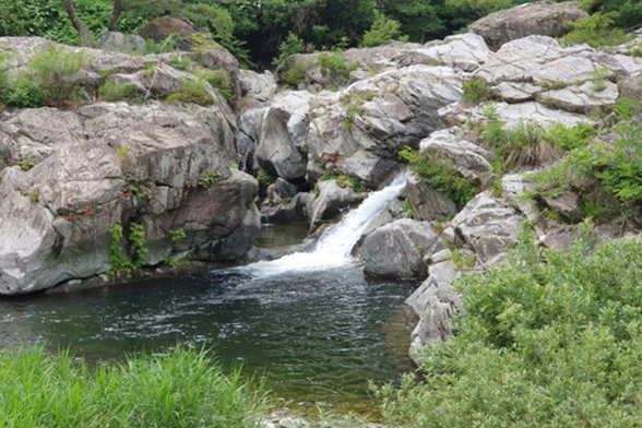 경기도 가평군 가평읍 승안리에 있는 계곡이다. 칼봉산 (900m) 에서 발원하여 옥녀봉을 감싸듯이 흐른다. 24km에 걸쳐 와룡추, 무송암, 고실탄, 일사대, 추월담, 권유연, 농원계 등 9개의 절경이 이어진다. 자료출처 : 대한민국 구석구석(http://korean.visitkorea.or.kr) 펜션에서 21.7km, 차량으로 약 35분